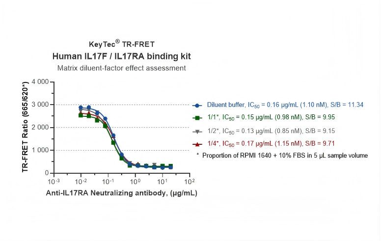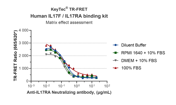 KeyTec® TR-FRET Human IL17F/IL17RA结合检测试剂盒可用于测定IL17F与IL17RA蛋白之间的互作。本试剂盒运用KeyTec® TR-FRET技术,可用于小分子抑制剂、多肽或抗体阻断剂的高通量筛选,具有简单快速、准确性高等特点。